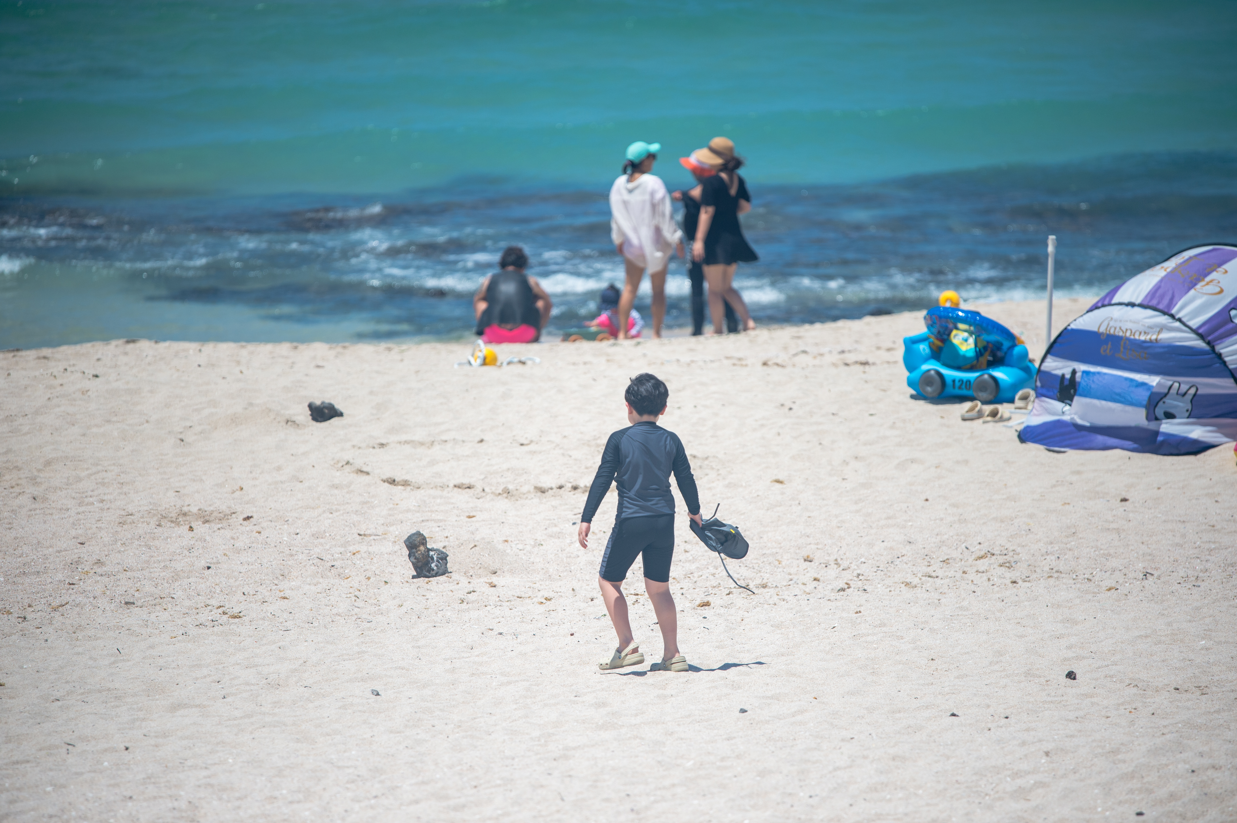 도착하자마자 바다부터 봄. 물 색깔 좋고 하늘 맑음. 날씨 운이 좋았다. 애는 모래 밟는 게 좋은지 한참을 저러고 논다. 그냥 멍하니 앉아서 바다 보고 있으니 머리 좀 식는 느낌.