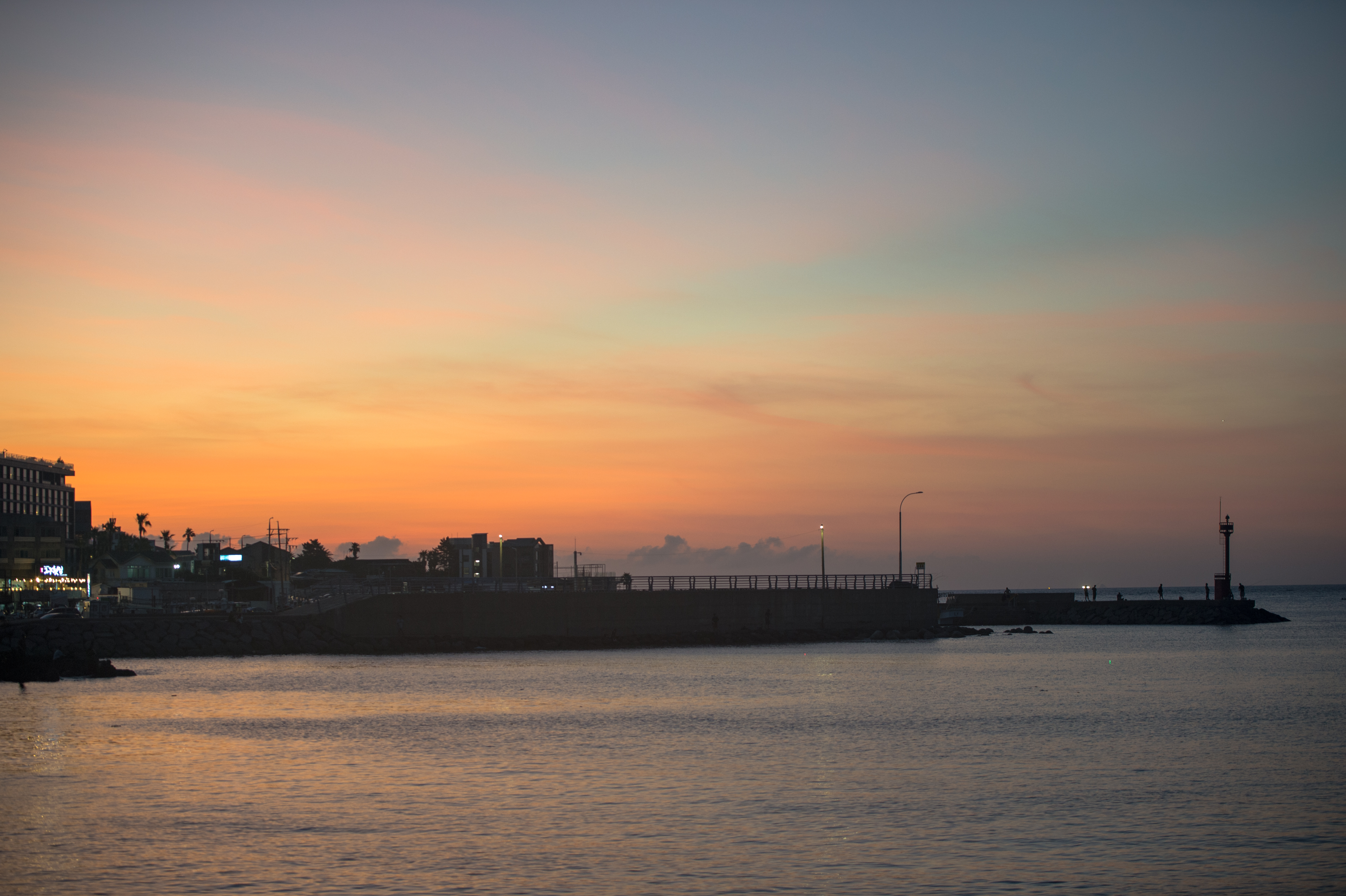 항구 쪽 오니 해가 완전히 넘어간다. 하늘 색깔 변하는 거 구경하다 철수. 조용하니 좋다. 이제 회 한 접시하러 이동.